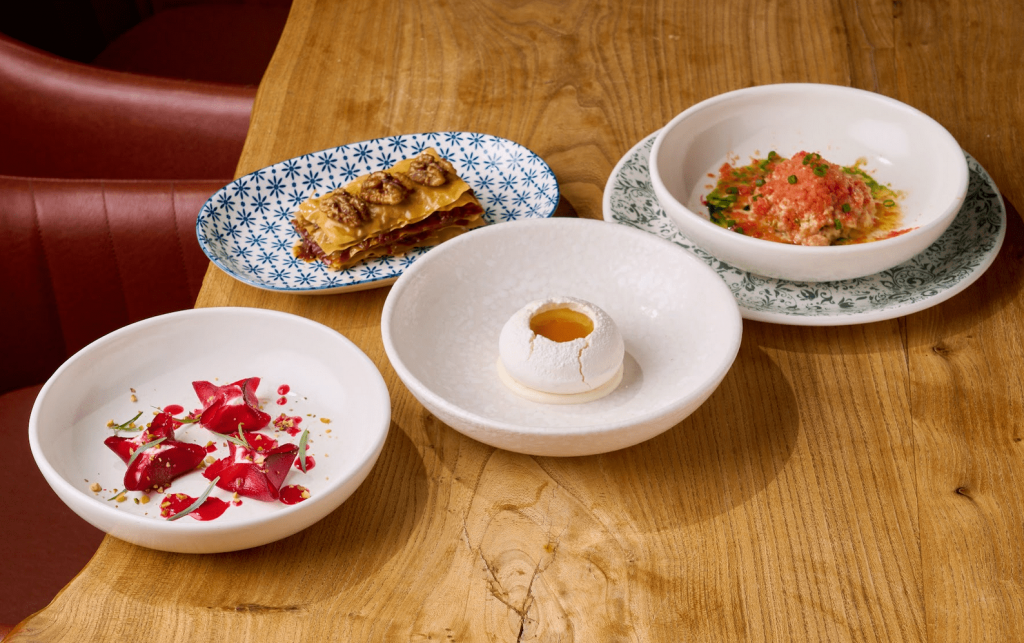 Кульминация — пахлава с бычьими хвостами. Традиция сладкой пахлавы звучит по-новому, с пряными орехами и густым мясным вкусом.