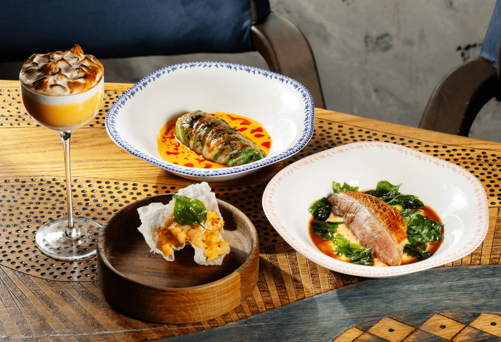 В концепции даров земли и леса я собрал аккорд из морепродуктов, рыбы и мяса, которые гармонично сочетаются и подготавливают гостя к каждому следующему курсу. Кульминацией сета является десерт, где опаленная меренга идеально подходит к характерной кислинке лимонного курда.