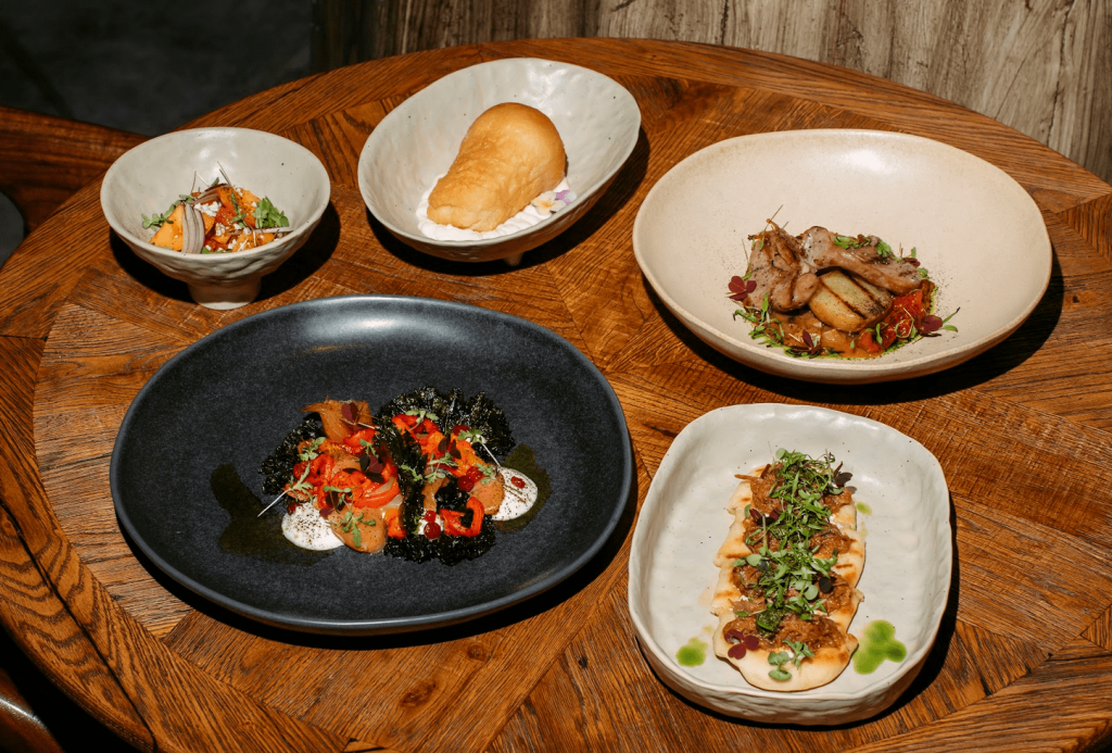 Гастросет собран на пересечении гастрономических традиций народов России. В нем переплетаются вкусы разных регионов: слабосоленый лосось с печеным перцем, томаты с дагестанским сыром, бараньи языки с грибами и овощами. Важную роль играют татарские специалитеты — лепешка, замешанная на катыке, заправка из кукурузного масла, узнаваемой детали региональной кухни.