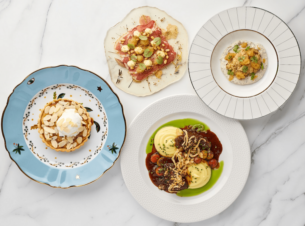 Идея сета – проще некуда! Французская классика сочетается на тарелке с локальными продуктами. Это фермерская утка, яблоки антоновка, щучья икра.
