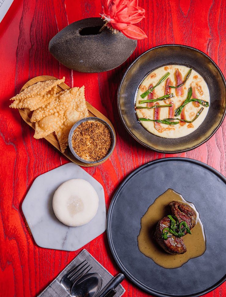 Создавали свой сет с искренним уважением, обратившись к гастрономическим традициям региона. Хотели рассказать историю через вкус, поэтому в основе меню — проверенные поколениями локальные продукты и аутентичные технологии их приготовления. В качестве главных героев мы выбрали настоящие деликатесы наших краев — вырезку конины и вяленую утку, которые передают настоящий вкус региона.