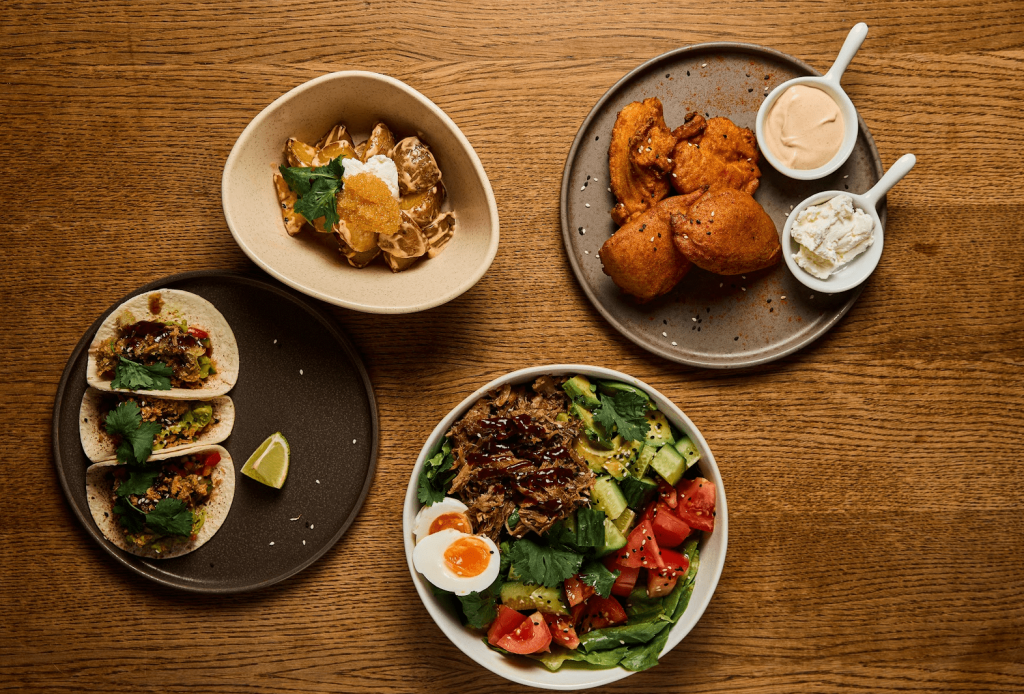 Сет состоит из трех блюд с мексиканскими нотками и одного блюда традиционной русской кухни, но в нашей интерпретации. Тако с кактусом, Кобб салат с ребрышками, Булочки из кукурузы – традиционные блюда Латинской Америки с нотками Мексики. Картофель бейби с щучьей икрой – блюдо русской кухне в нашей интерпретации.