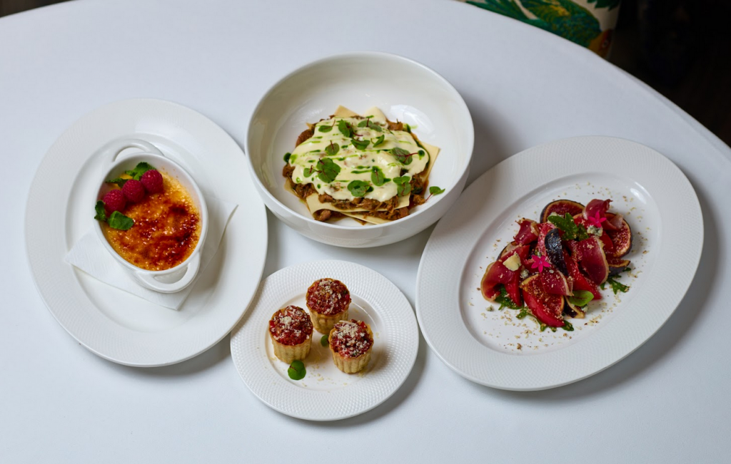 • «Җимешле үрдәк»: копченое филе утиной грудки со спелым инжиром на подушке из микса салатов с томатом, ароматным сыром и орехом пекан.
