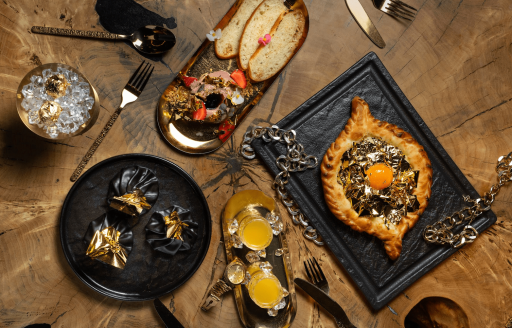 В этом году представляем настоящее смешение luxury-тенденций в сете GOLDEN AUTUMN EDITION SET: кавказская классика c итальянской тонкостью вкусов. Основное блюдо – хинкали Black Edition с морепродуктами. Локальность и южную душу подчеркнет хачапури по-аджарски. Нежный паштет из печени цыпленка станет знаком прихода осени и игривых сочетаний вкусов.