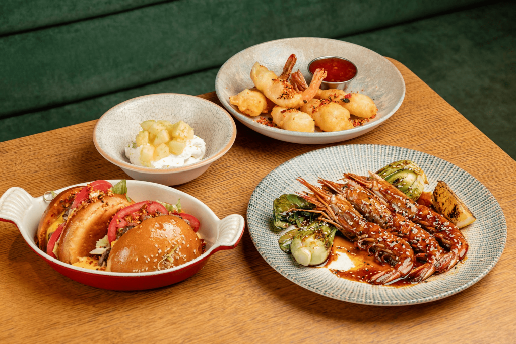 Сочетание классики и фирменного стиля. Бургер подаем с щедрой порцией плавленного тягучего сыра чеддер, который не оставит вас равнодушными. Отборные аргентинские креветки, обжаренные на гриле до совершенства, в пряном соусе. Завершаем легкой, сливочной панакотой со сладостью спелой груши и освежающей, едва уловимой кислинкой юдзу.