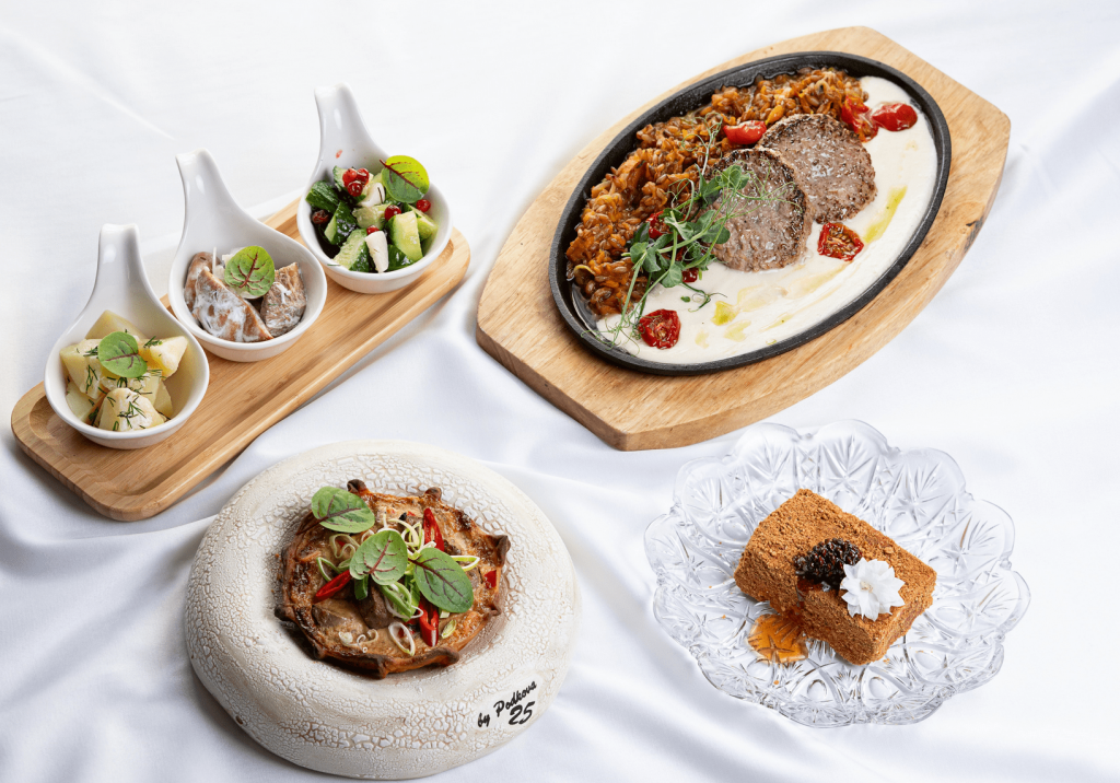 Это гастрономическое путешествие на Урал, где традиционные рецепты обретают современное звучание. Я совмещаю контрасты текстур и глубокие томленые вкусы из печи: нежную печень кролика в хрустящей калитке, сочную индейку с зернистой кашей и мой семейный рецепт сметанника с вареньем из шишек. Это кухня моей родины, которую я люблю и дарю вам!