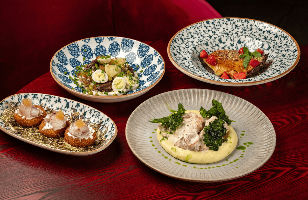 Гастрономическое путешествие, где классические техники встречаются с сибирскими акцентами. Этот сет — наша ода русским продуктам, переосмысленным через призму авторской кухни. В начале – хрустящий крокет, тающий сугудай и благородная текстура икры. Специалитет: нежная печень индейки дополнена яблочным кимчи. Кролик в горчичном соусе с картофельным пюре – идеальная французская классика. И неожиданный финал: десерт из батата.