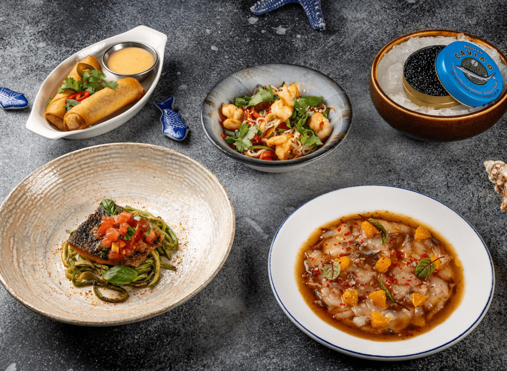 • Севиче из сибаса: тонкие слайсы свежайшей рыбы с цитрусовым акцентом и фирменным соусом.