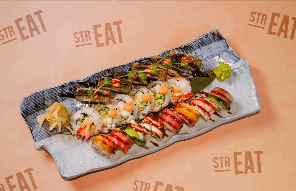 • Запеченный ролл Эби Унаги: современная классика, где нежнейший угорь и креветка встречаются под аппетитной сырной шапочкой.