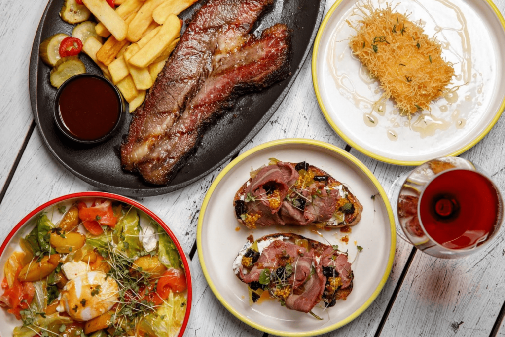 - Брускетты с фирменным ростбифом, сыром креметта и цукатами из свеклы.